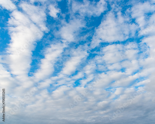 Obraz premium blue sky with clouds lined up in rows