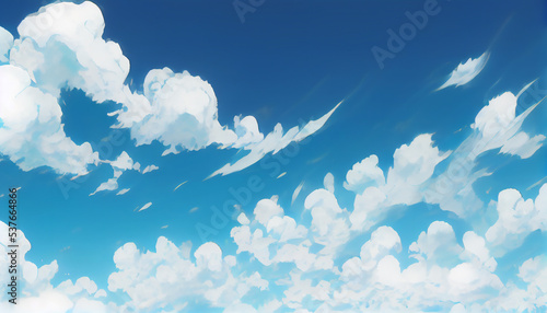 Fototapeta premium blue sky with clouds, manga, anime, comic style