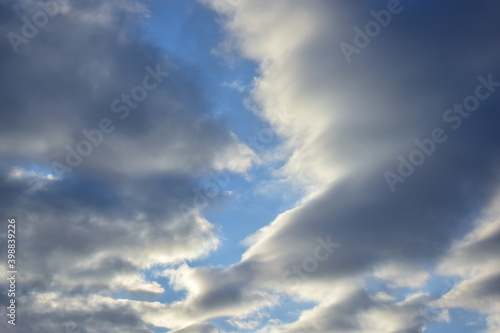 Fototapeta premium Blue sky with clouds of different shades.