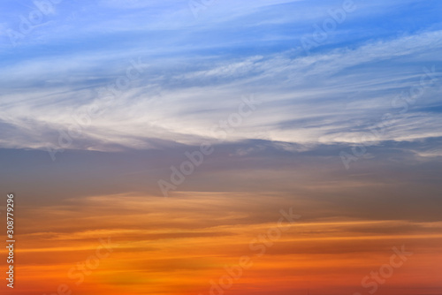 © zaktatyana, Fototapeta premium blue sky with clouds. orange sunrise or sunset