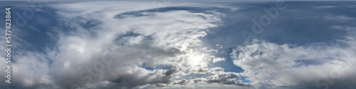 Obraz premium blue sky with cumulus clouds as seamless hdri 360 panorama with zenith in...