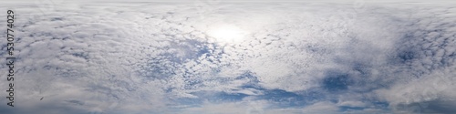 Fototapeta premium Blue sky with Cumulus clouds Seamless panorama in spherical equirectangular format. Complete zenith for use in 3D graphics, game and for composites in aerial drone 360 degree panoramas as a sky dome