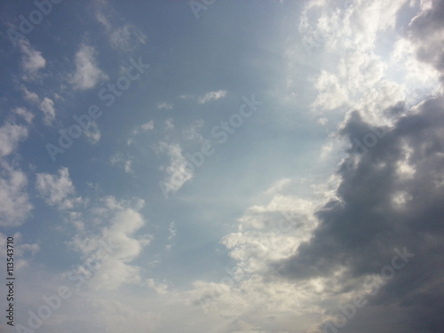 © chaowalit, Fototapeta premium Blue sky with dark clouds and sunlight