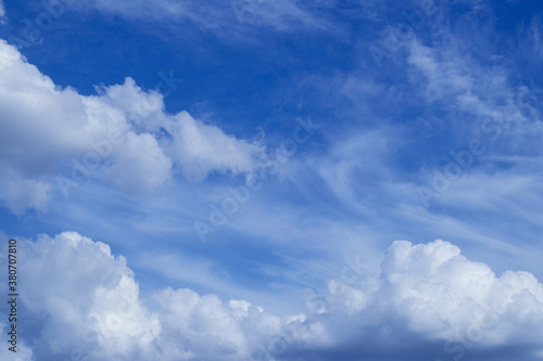 Obraz premium Blue sky with dramatic cumulus clouds.