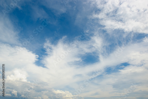 Fototapeta premium Blue sky with dynamic cloud formations including cumulus and cirrus types...