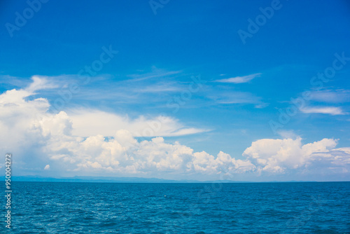 Obraz premium Blue sky with fluffy cloud in sea background
