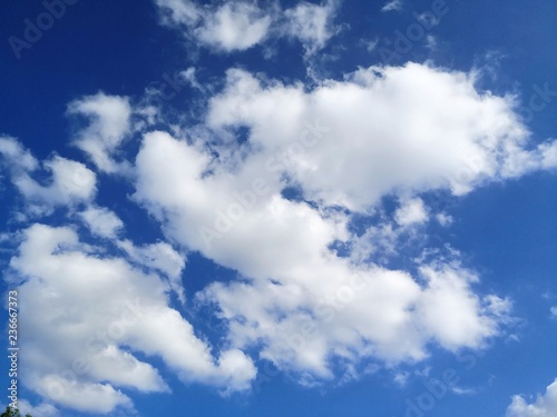 © fotofox33, Obraz premium Blue sky with fluffy clouds copy space