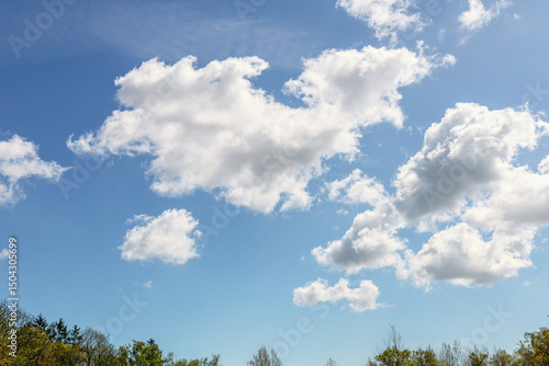 Obraz premium Blue sky with fluffy white clouds