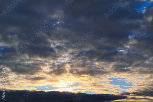 Fototapeta premium Blue sky with gold clouds - dramatic sunset, beautiful natural background....