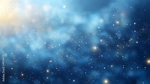 Naklejka premium Blue Sky with Golden Sparkles and Bokeh Lights