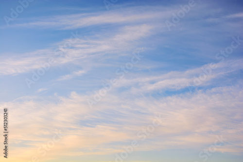 © Pellinni, Fototapeta premium blue sky with high clouds at sunrise. beautiful nature background in morning light. fine weather forecast