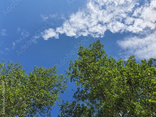 © Natalya, Obraz premium blue sky with light clouds above the tree, view countryside