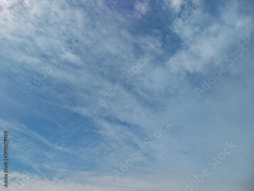 Obraz premium Blue sky with light, scattered cirrus and cirrocumulus clouds spreading...