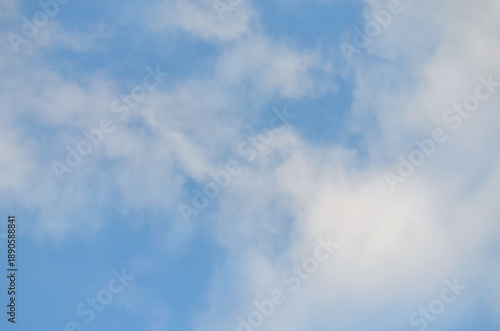 © Mariana, Obraz premium Blue sky with light white clouds in sunny day landscape.Nature, environment, beautiful sky background.