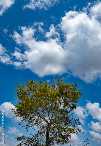 © mustafaoncul, Fototapeta premium blue sky with plane tree and white clouds in background