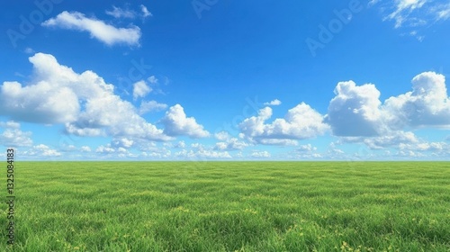 © Ariestia, Obraz premium Blue sky with puffy white clouds above a grassy field