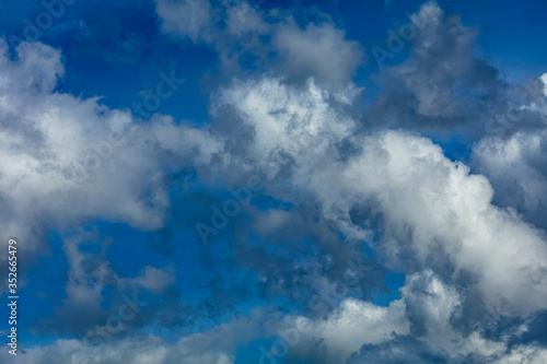 © Olga Sapegina, Obraz premium Blue sky with rayny clouds high angle view