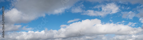 Obraz premium blue sky with several cumullus clouds, panorama format