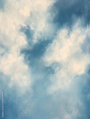 Fototapeta premium Blue sky with soft white clouds painted on canvas.