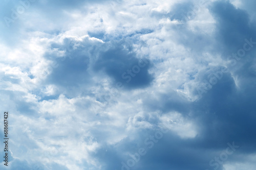 Naklejka premium Blue sky with white cloud. The summer heaven is colorful clearing day Good weather and beautiful nature in the morning.