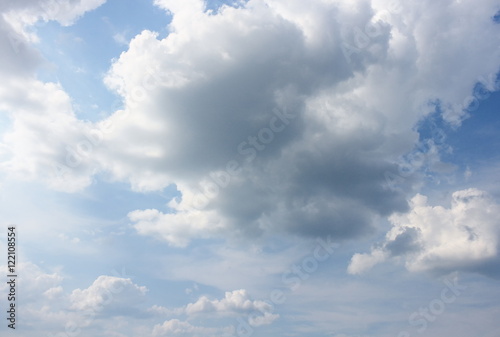 Obraz premium Blue sky with white clouds, and raincloud motion.