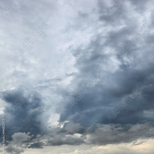 © YoYo & J studio, Obraz premium Blue sky with white clouds, bright colored cloudscape banner. Fluffy heaven pattern, aesthetic natural scene. Beautiful Cloudy background, nature environment wallpaper, panoramic view