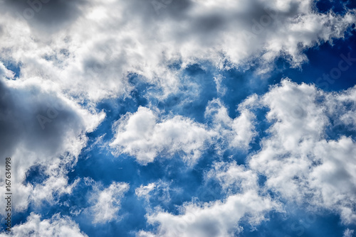 © elen31, Obraz premium Blue sky with white clouds closeup