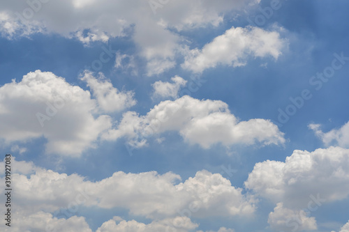 Fototapeta premium Blue sky with white clouds pattern background. Sky and clouds in daylight....