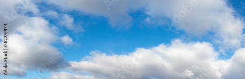 Fototapeta premium Blue sky with white curly clouds in sunny weather