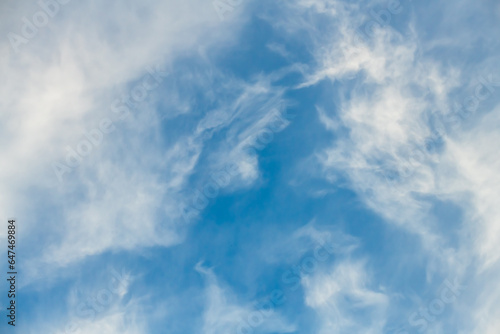 © Merrillie, Obraz premium Blue sky with white soft wispy high clouds
