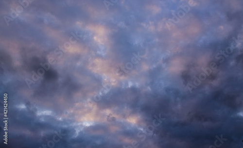 Fototapeta premium blue sky with yellow pink fluffy clouds