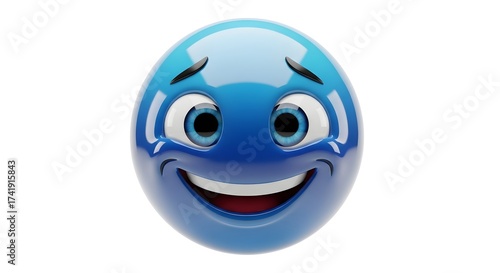 Fototapeta premium Blue smiley face isolated on white background expressing a happy and joyful...