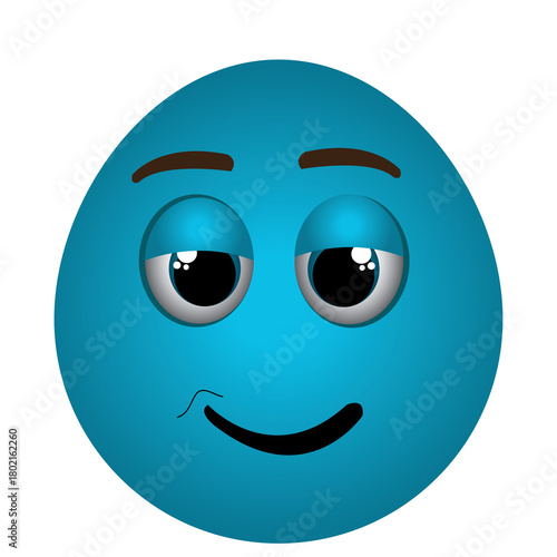 © liyatangguh, Fototapeta premium Blue Smiley Face With Eyes Half Closed And Slight Smile On Transparent Background Vector Art
