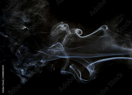 © dule964, Fototapeta premium Blue smoke isolated on black background and texture
