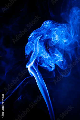 © peterkai, Fototapeta premium Blue smoke motion on black background.