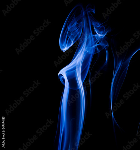 © yauhenka, Obraz premium Blue smoke on black background
