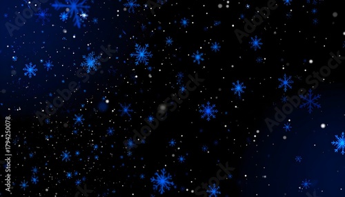 © Priscila, Fototapeta premium Blue Snowfall and Glowing Particle Abstract Background