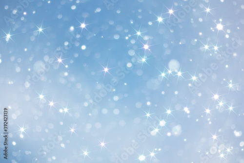 Fototapeta premium blue snowfall bokeh background, abstract snowflake background on blurred...