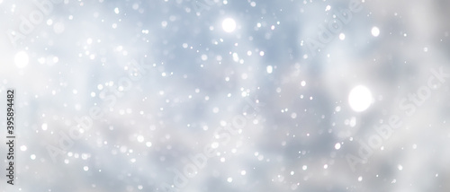 Fototapeta premium blue snowfall bokeh background, abstract snowflake background on blurred...