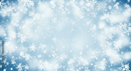 © Abeto_21, Fototapeta premium Blue Snowflake Pattern Background with Falling Snowflakes for Winter Holiday Design
