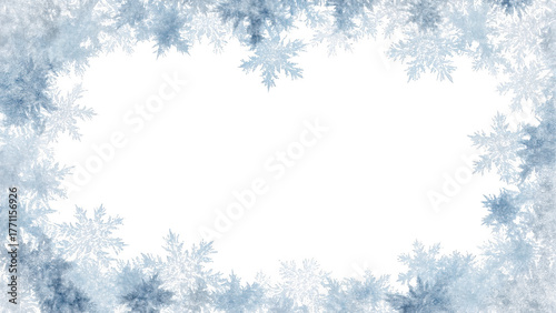 © Atlas, Fototapeta premium Blue snowflakes frame a white background, AI, PNG