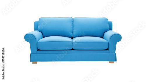 © JR-50, Fototapeta premium Blue sofa with soft cushions and elegant design