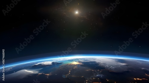 © Ananto, Fototapeta premium Blue space background with earth and galaxy.