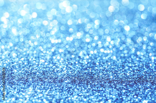 © Thanakorn, Fototapeta premium blue Sparkling Lights Festive background with texture. Abstract Christmas twinkled bright bokeh defocused and Falling stars. Winter Card or invitation