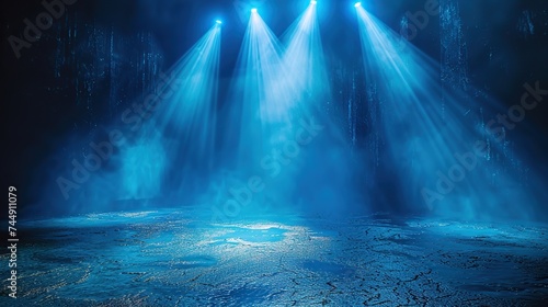 © Morng, Obraz premium Blue spotlight background with studio lamp
