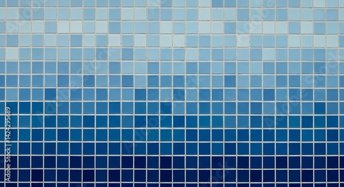 Fototapeta premium Blue square mosaic tile pattern texture background with color gradient