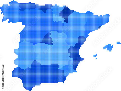 Obraz premium Blue square shape Spain map on white background. Vector illustration.