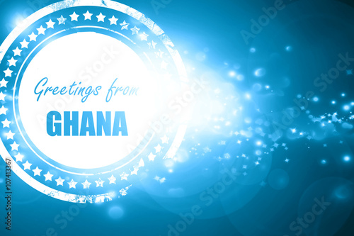 © Argus, Naklejka premium Blue stamp on a glittering background: Greetings from ghana