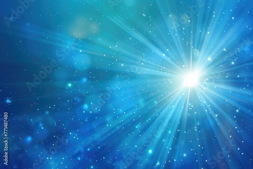 Naklejka premium Blue Star Burst: Abstract Shining Sky Background with Bright Rays of Blue Light
