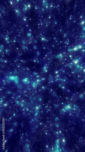 © Bolbik, Obraz premium Blue starry particle field with glowing bokeh and deep cosmic atmosphere, seamless abstract background